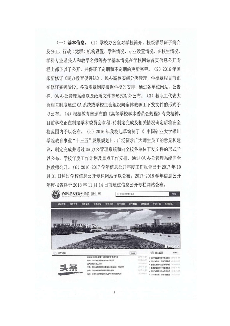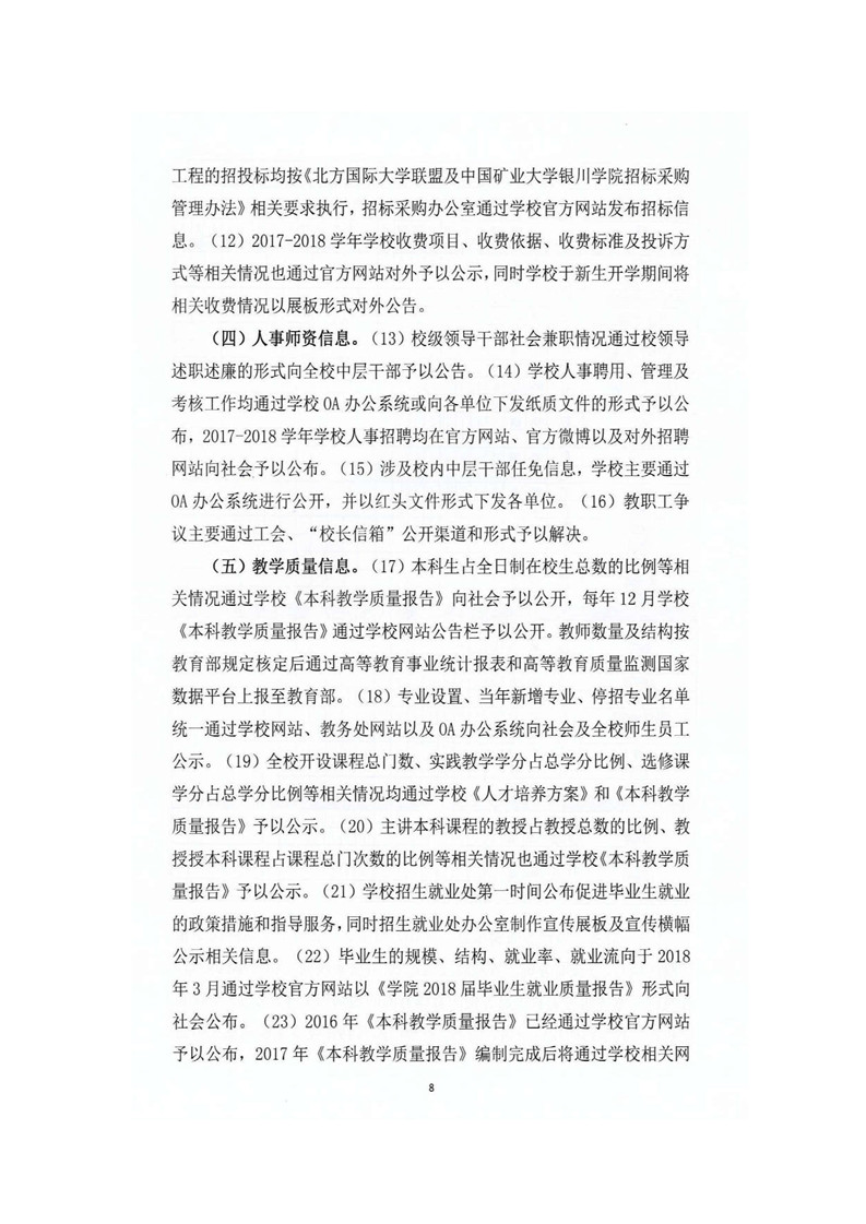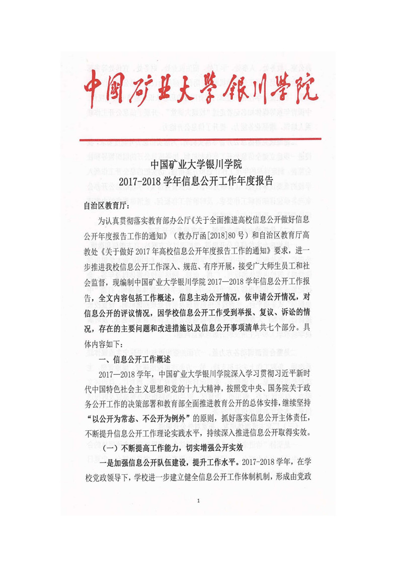 中国矿业大学银川学院2017-2018学年信息公开工作年度报告