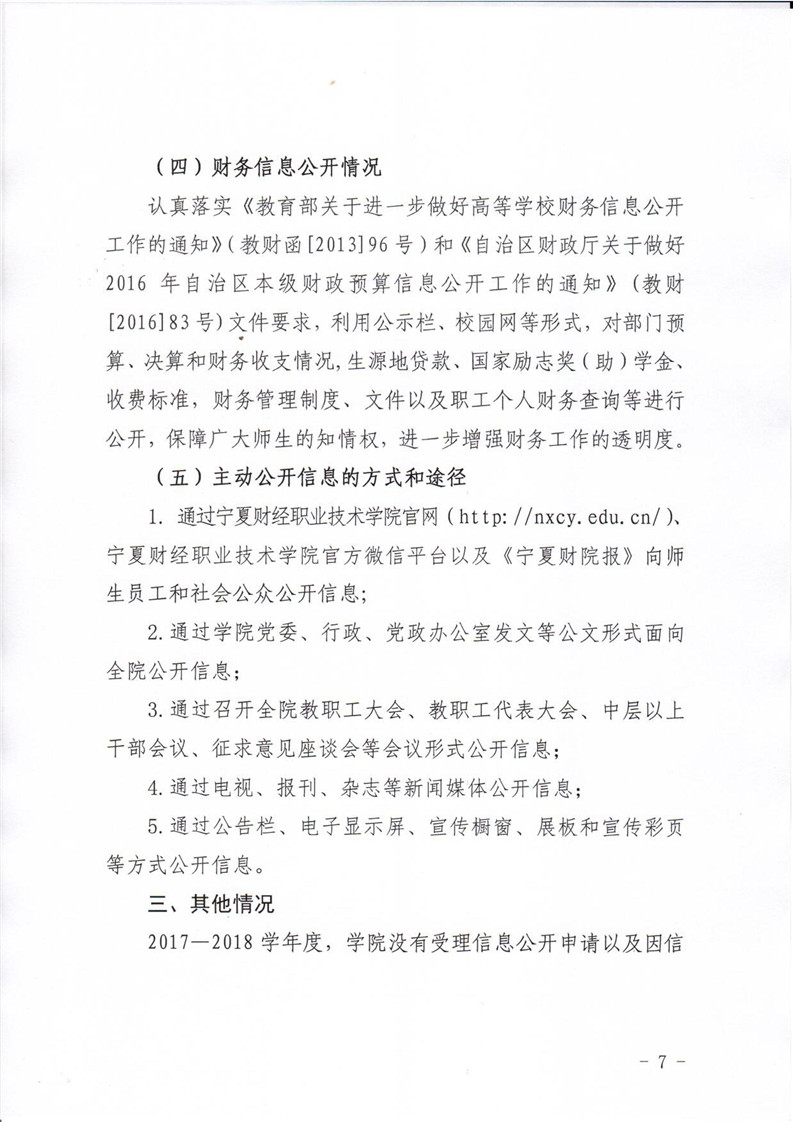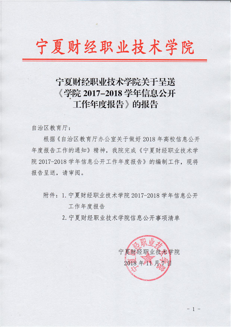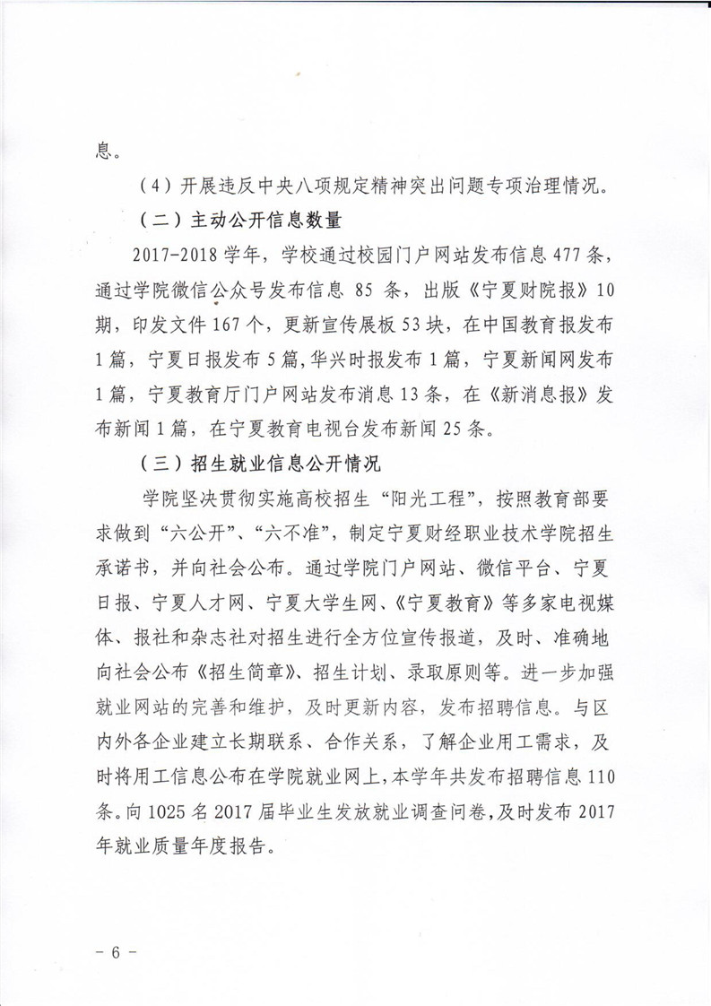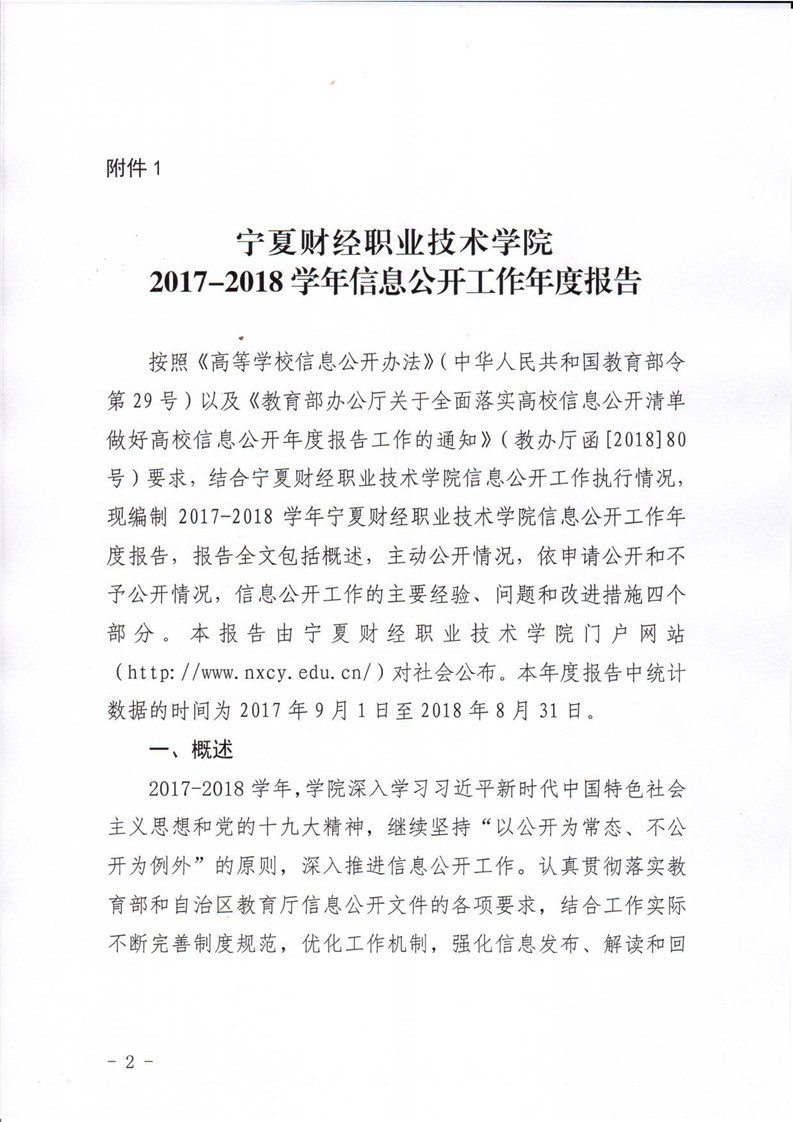 宁夏财经职业技术学院2017-2018学年度信息公开年度报告