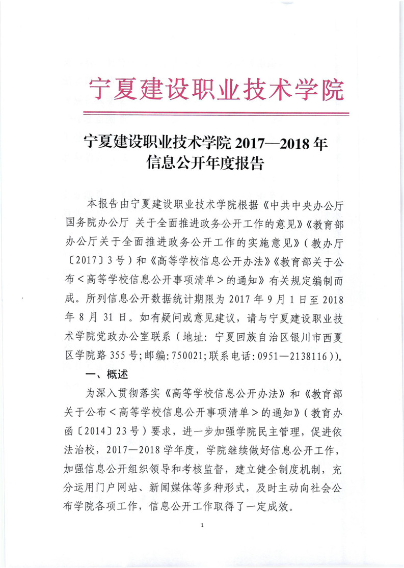 宁夏建设职业技术学院2017—2018学年度信息公开年度报告