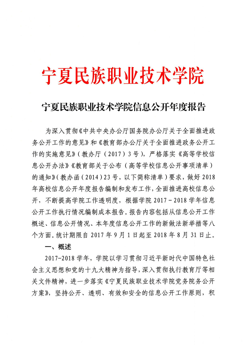 宁夏民族职业技术学院2017-2018学年度信息公开年度报告