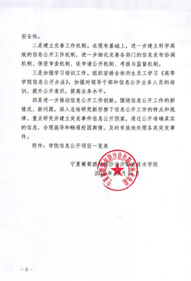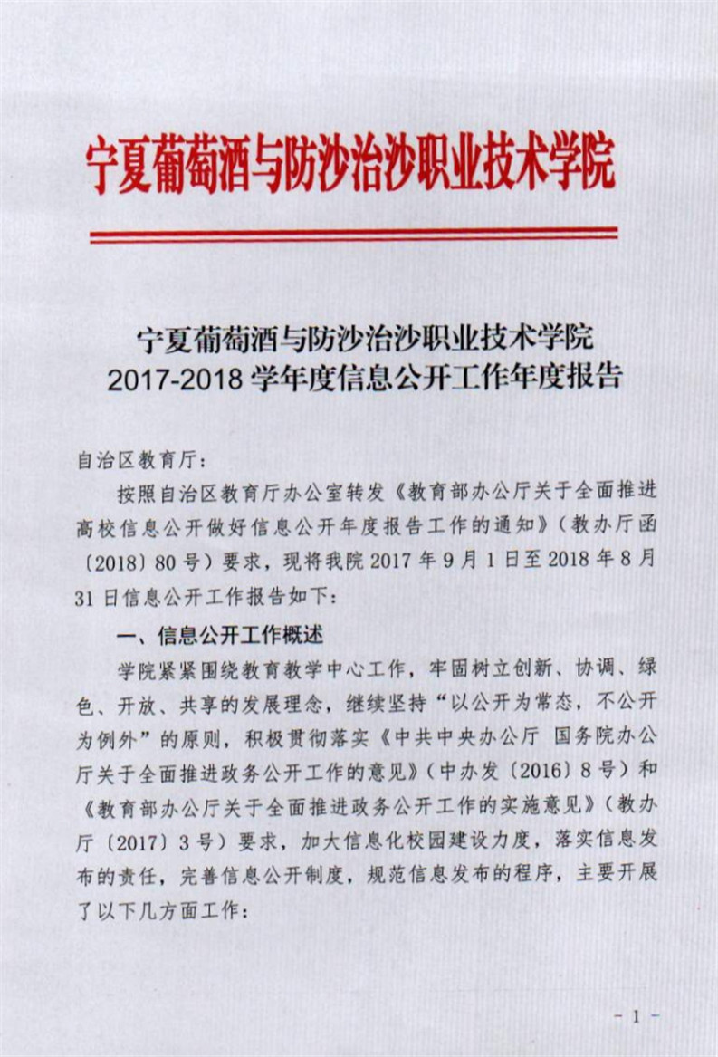 宁夏葡萄酒与防沙治沙职业技术学院2017-2018学年度信息公开工作年度报告
